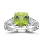 0.04 Cts Diamond & 2.04 Cts Peridot Ring in 14K White Gold 9.0 This product is sold by JEWELS-BY-SABRINA.,METAL:14K Gold,ACTUAL METAL:14K White Gold,RHODIUM:Yes,NUMBER OF DIAMONDS:4,SHAPE:Round,MINIMUM COLOR:H,MINIMUM CLARITY:SI,MINIMUM CARAT TOTAL WEIGHT:0.04,SETTING STYLE:Prong Setting,GEMSTONE:Peridot,SHAPE:Cushion Checker Board,AVERAGE COLOR:Medium Green,AVERAGE QUALITY:AA,MINIMUM CARAT TOTAL WEIGHT:2.04,GEMSTONE DIMENSIONS:8 mm,SETTING STYLE:Prong Setting,NUMBER OF STONES:1,COLOR:Green- White,GENDER:Womens,PRODUCT TYPE:Fashion Ring,MATERIAL:Gemstone-White Diamond ...