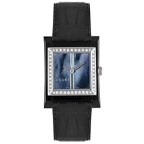 GUCCI GUCCI-YA111404 stainless steel case; Black leather strap Diamond accent ...
